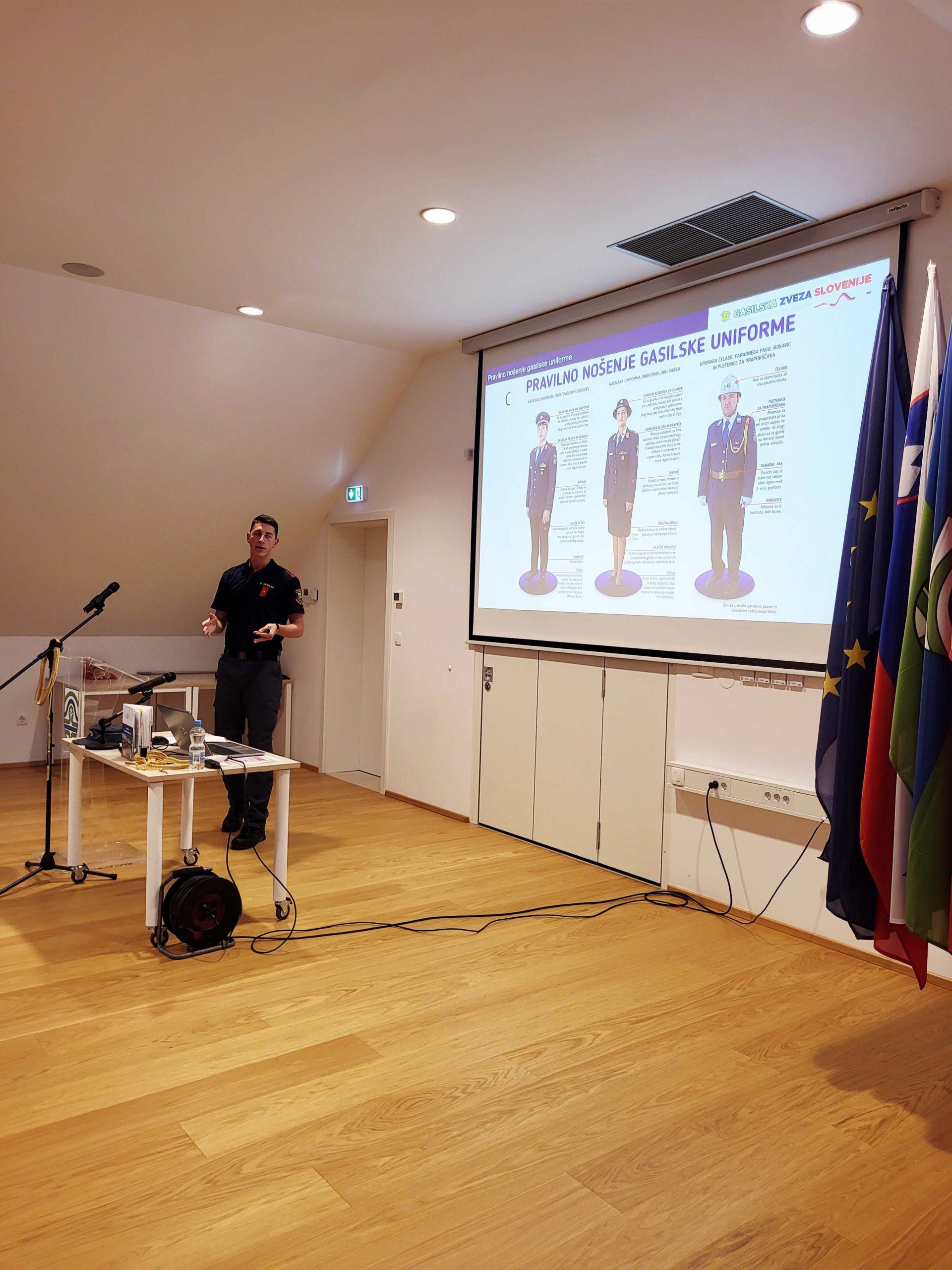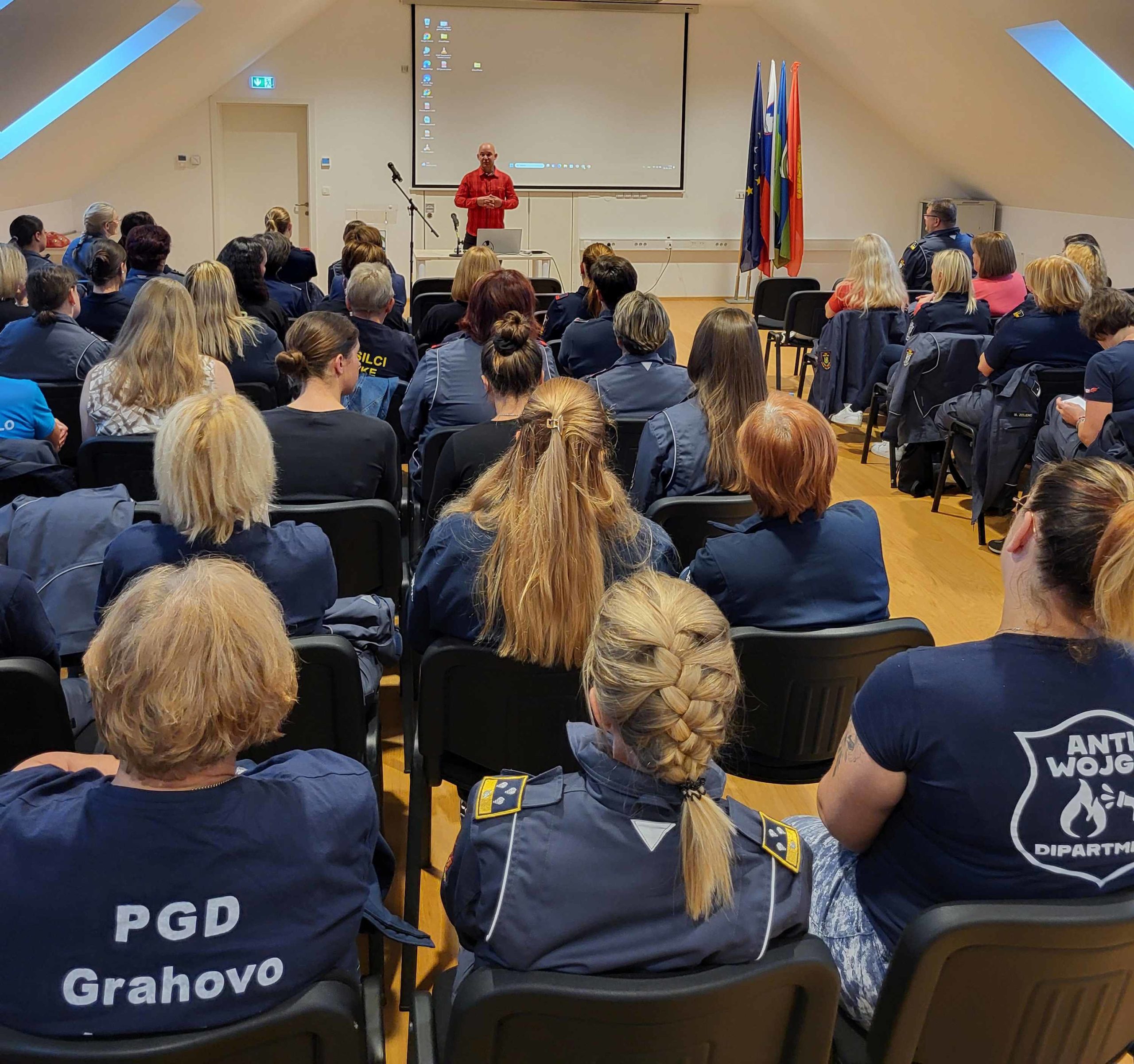 Po vaji je sledilo strokovno predavanje o gasilskem protokolu, ki ga je izvedel Gaj Herman iz GZ Slovenije. Udeleženke so z zanimanjem prisluhnile predstavitvi, ki je med drugim osvetlila pomembne podrobnosti o protokolu oblačenja gasilk in gasilcev.