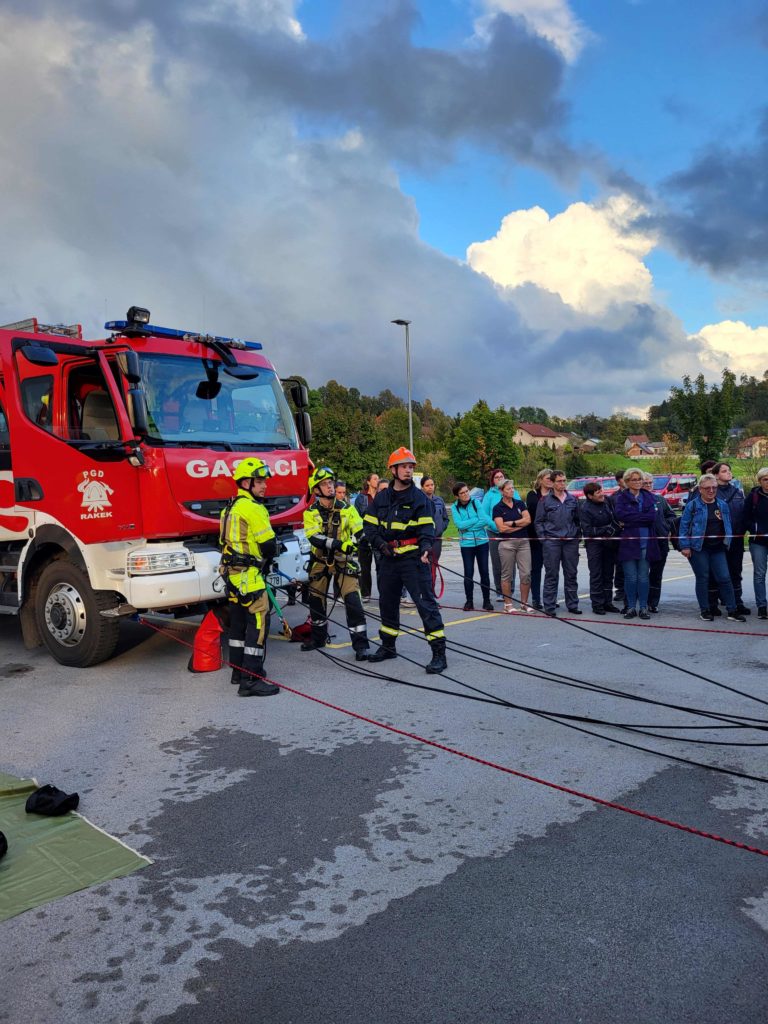 Sledil je prikaz reševalne vaje gasilcev PGD Rakek. V scenariju je šlo za nesrečo pri vzdrževalnih delih v jašku, kjer je zaradi napake na inštalaciji prišlo do izpusta večje količine CO₂, pri čemer je v jašku ostal ujet nezavesten delavec. Gasilci so prikazali uspešno reševanje s pomočjo vrvne tehnike.