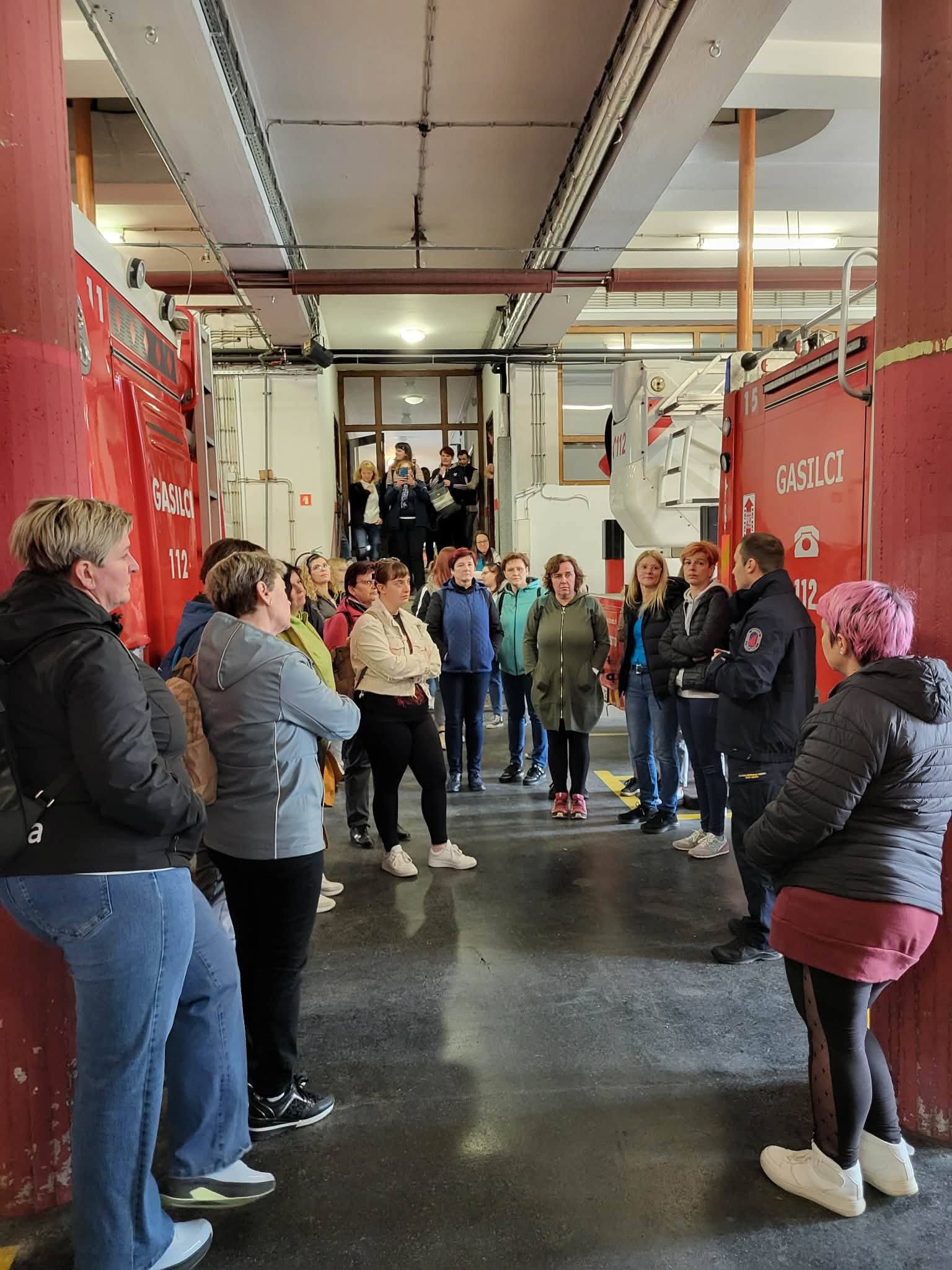 Dan smo začele z odhodom iz Cerknice in ga nadaljevale s strokovnim ogledom Gasilsko-reševalnega centra Novo mesto, kjer so nam domači gasilci predstavili svoje delo in vozni park.
